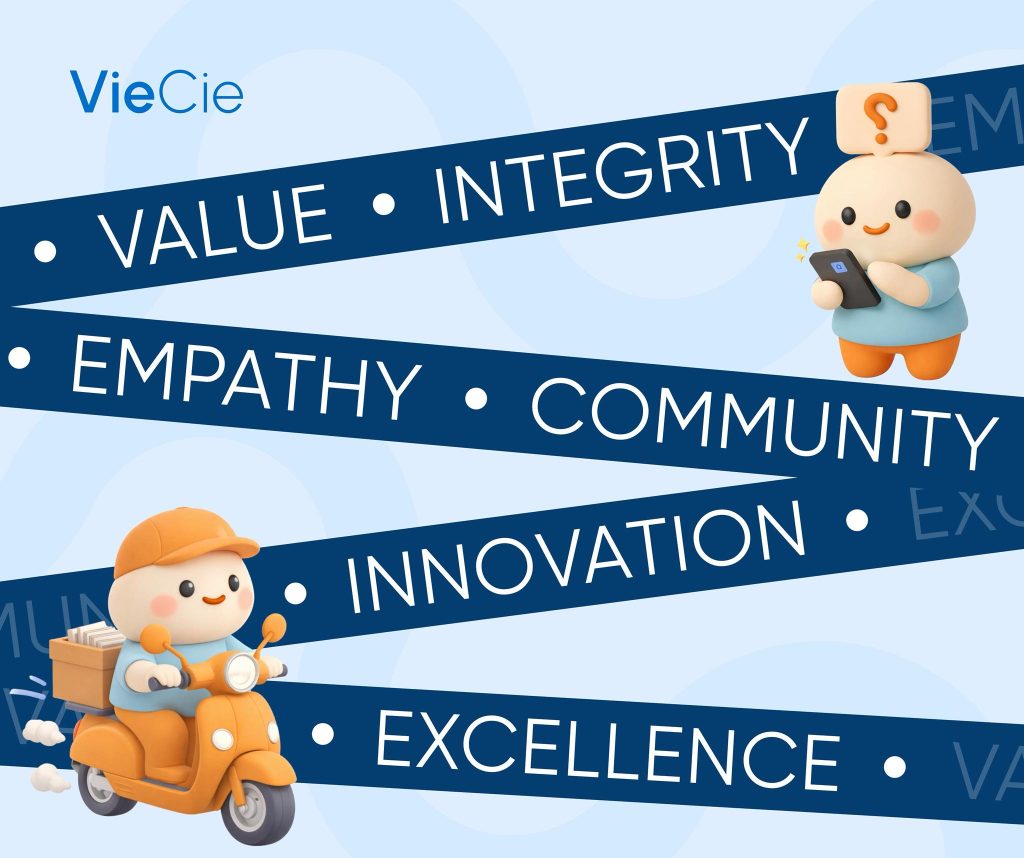 Để duy trì vị thế là một nền tảng kết nối dịch vụ toàn diện, VieCie luôn vận hành dựa trên hệ giá trị nhất quán: